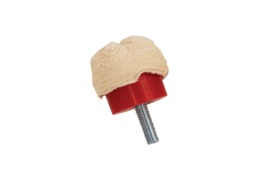 Great for finishing the inside of bowls and goblets. Like the Beall Buffing System there are three types of Bowl Buffs. First is an all linen buff (red base) for tripoli compound (123905) to remove scratches. Second is a linen/flanel buff (white base) for white diamond compound (123906) to remove the remaining tripoli and for final polishing. The third buff is all flannel (yellow base) for applying carnauba wax (123907). Each Bowl Buff has a 3/8″ threaded bolt on the bottom to allow them to be used with the same mounting hub as the Beall Buffing System.Â