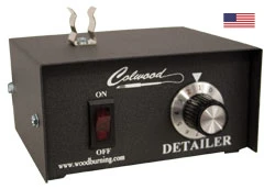 The Detailer has more power than the Cub and is perfect to use for signing your projects, surface decoration and more serious pyrography. It has a variable heat control and a separate lighted switch. The ultra-flex handpiece cord attaches to terminals for easier changing.