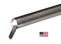 Both tools are made of 9/16″ by 12″ drill rod. The cutters are glued into the end of the shank with CA glue. Each tool comes with an extra cutter standard. The cutters are made of high speed steel with 10% Cobalt. The straight tool has a 1/4″ square cutter, while the angled tool has a 3/16″ square cutter. Both tools come unhandled. Instructions for basic use, sharpening and making a handle are included.