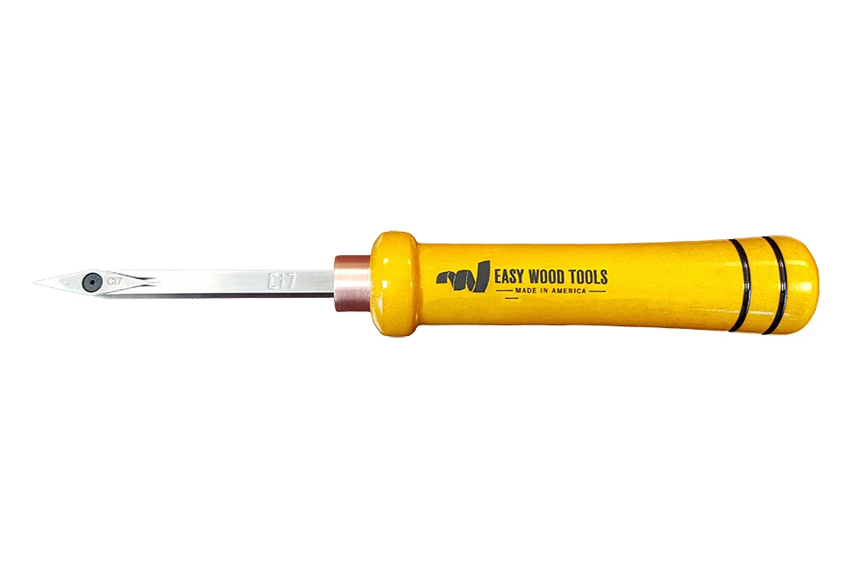 These Micro Tools from Easy Wood Tools allow for more precision when doing small work on the lathe. The carbide cutters are replaced when dull so no sharpening is needed. The tools have an overall length of 9-3/4″ including the 5″ handle.