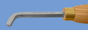 The 80° Bent Hollowing Tool is used to reach areas not possible with the 45° Bent Tool, such as under the sides of the entrance hole. The tool is made of 9/32″ M2 High Speed Steel and comes fitted with a 10″ Ash Handle.