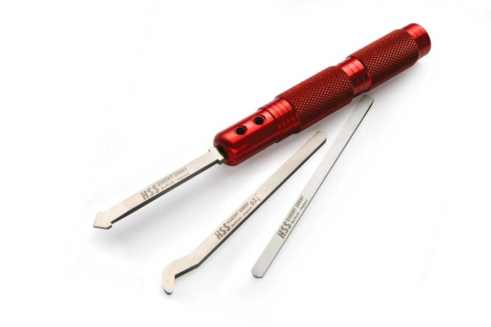 The Micro Hollow Set is perfect for small vases and ornaments. It includes one 5-1/2″ Micro Aluminum Handle, a 3/8″ depth drilling tool, a 1/4″ Round Nose Scraper for initial hollowing, and a 1/4″ Swan Neck Scraper to cut into shoulder areas. Overall length is about 9″ with the 5-1/2″ handle.