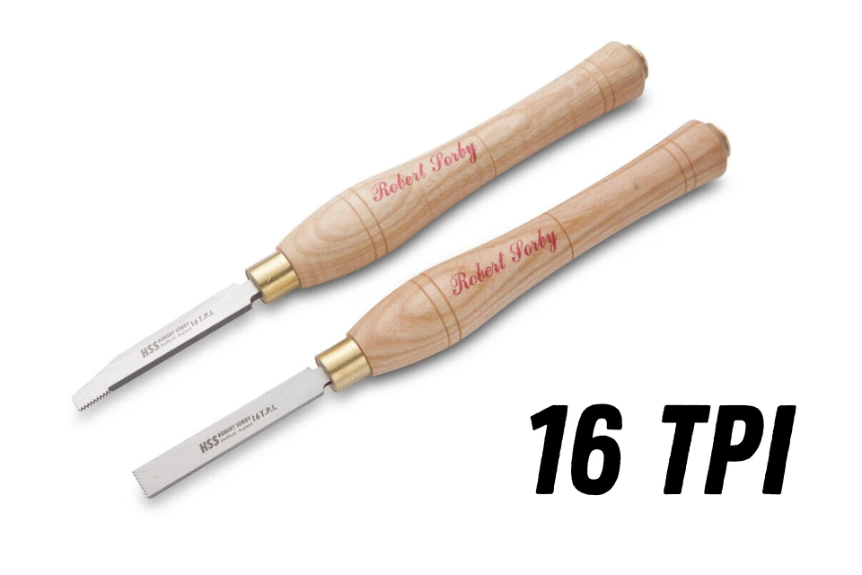 These cutters are 16 TPI and are made to be used with the lathe running at a slow speed of 300 to 500 RPM. Each tool comes fitted with an Ash Handle.
